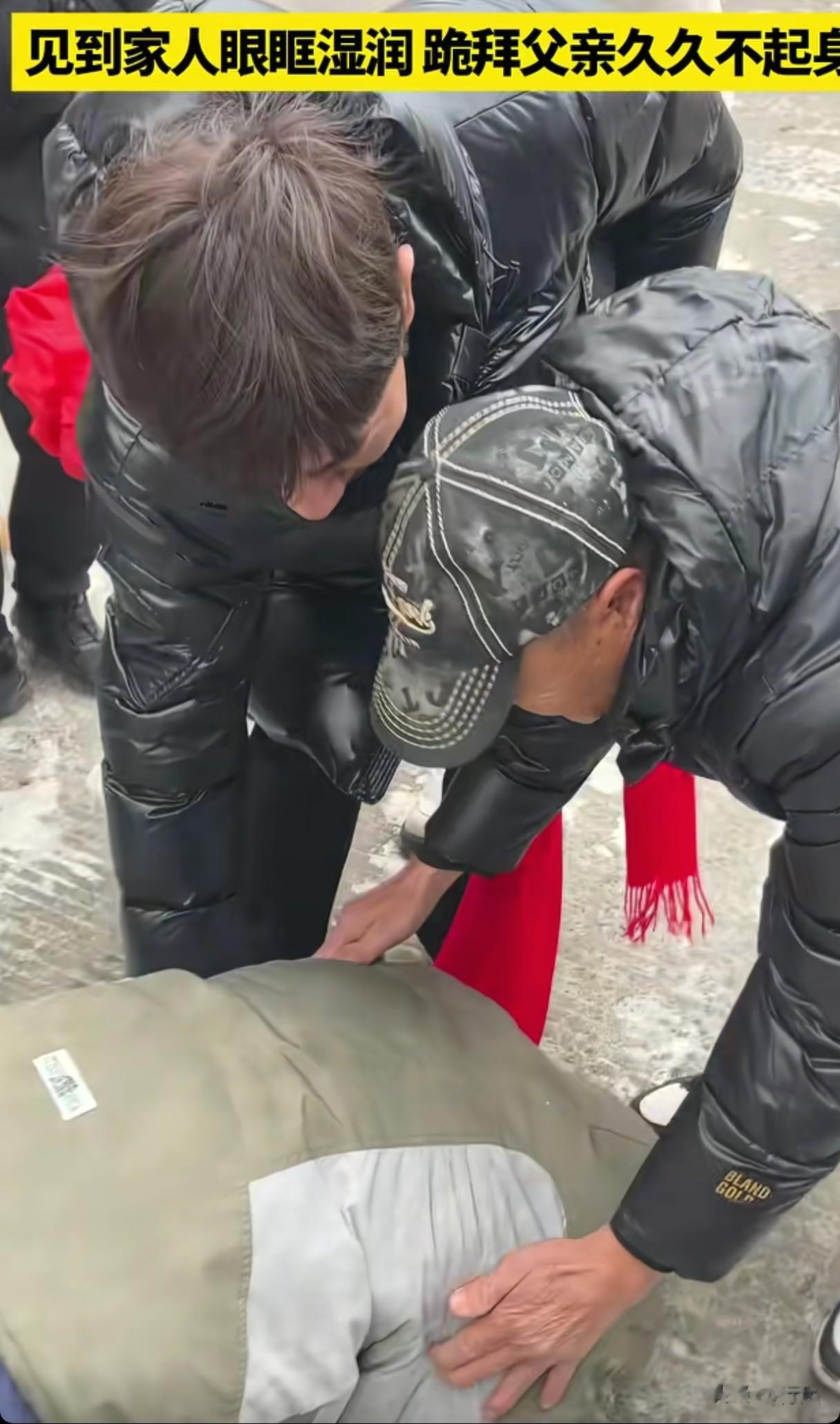 最让人动容的是,还未等对方开口,沈晓阳就直直地朝着父亲跪了下去,磕头,家人赶紧把他拉起来,“地上凉,快起来”。