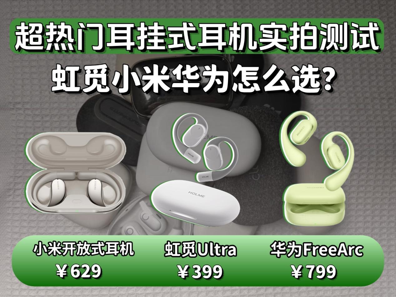 我这段时间陆续体验了多款挂耳式开放式耳机,踩了不少坑后,最终筛选出三款日常使用体验尚可的机型:399 元的虹觅 Ultra、629 元的小米开放式耳机以及 799 元的华为 FreeArc。这三款耳机价格跨度从三百到八百,定位和体验各有特点,与其看那些华而不实的宣传,不如从实际使用的核心需求出发,聊聊这三款耳机在佩戴、音质、功能性等方面的真实表现,帮大家避开选择误区,找到更贴合自己需求的那一款。