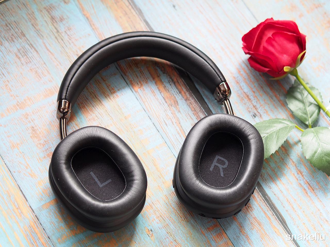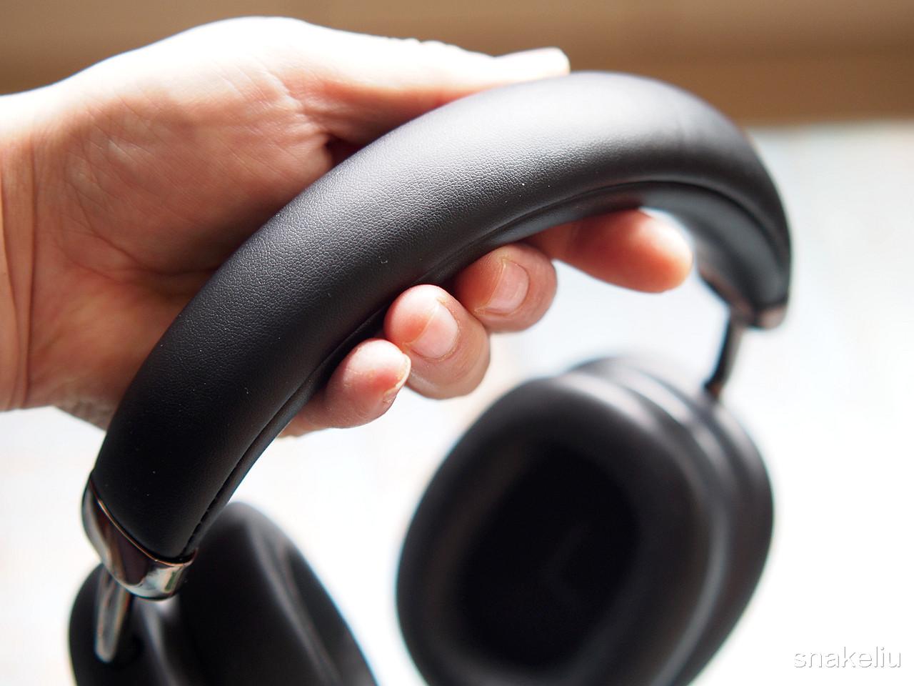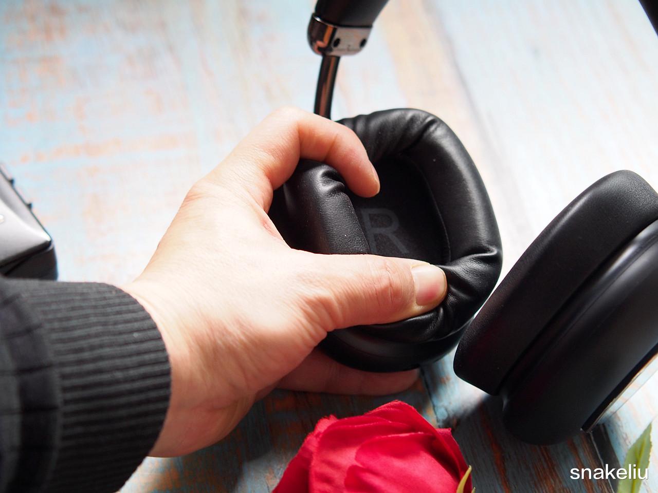 不仅如此,顶部的头梁也是同样材质设计,加厚的头梁佩戴起来一点没有压头夹脸的感觉。而且像我这样佩戴眼镜的用户使用耳机,也不会影响佩戴效果,不会出现漏音问题。