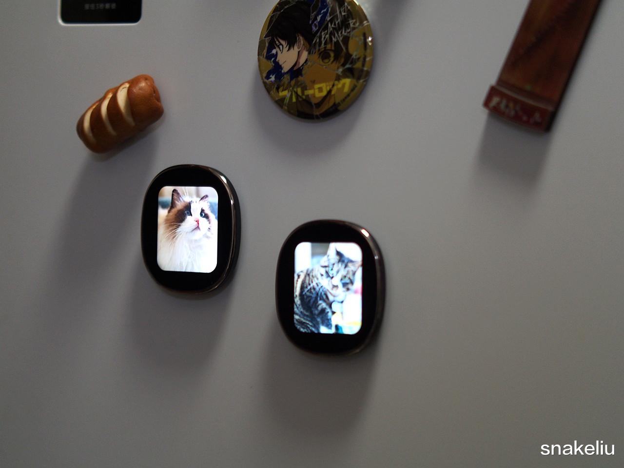 由于这两块屏幕可以独立使用,而且是磁吸在耳机上的。所以我拿来作为冰箱贴,也是很适合的。上面的图片还能切换,或者让它几秒钟变化一张,这样就变成了电子相册了。感觉这样玩法也是比较有趣,你也可以发挥自己想象力说不定还能有更有趣的玩法哦。