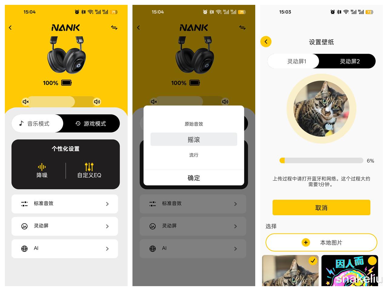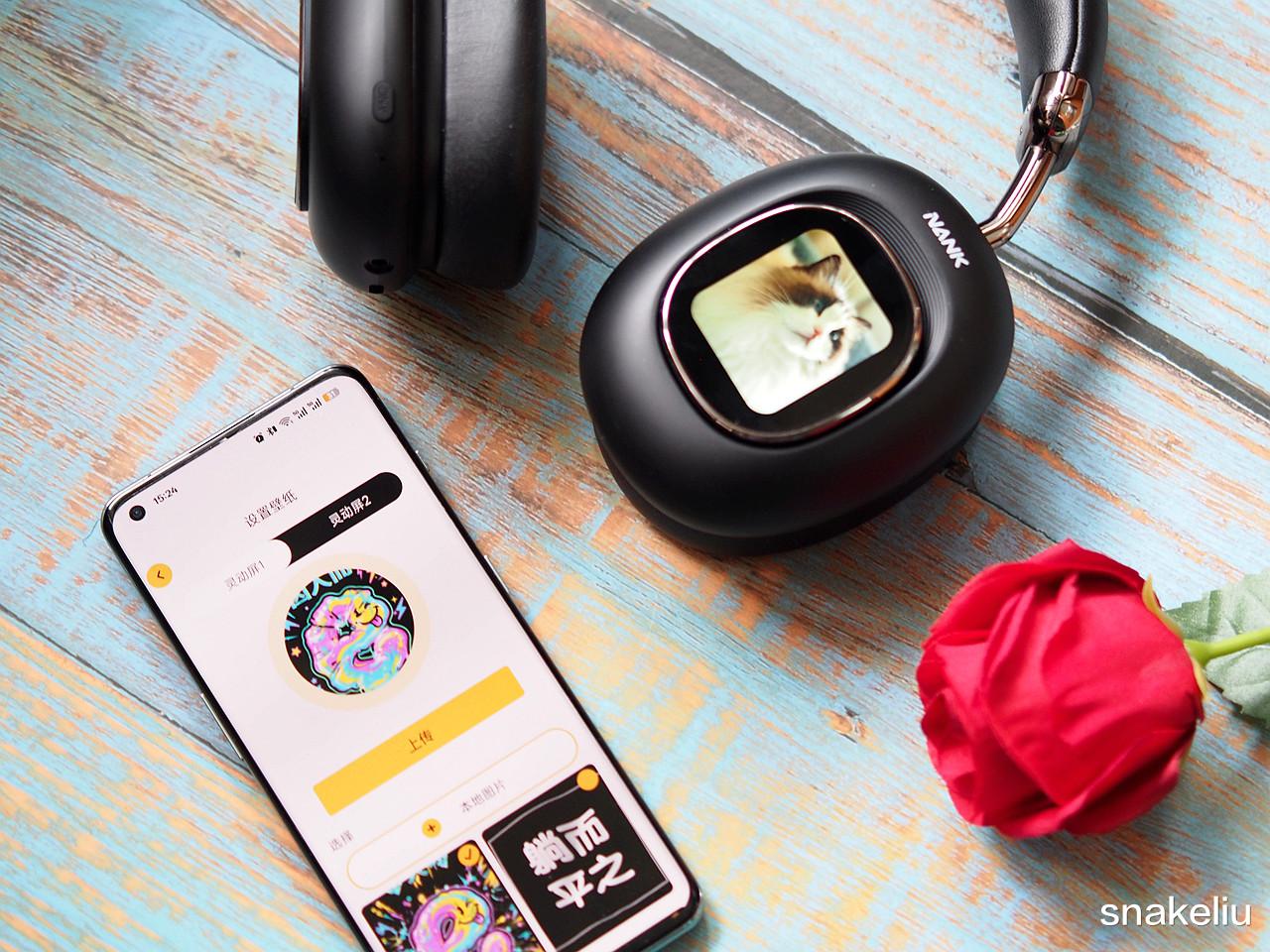 耳机的这两块屏幕亮起来后,果然不一样了。屏幕可以显示自己上传的图片,也能变成控制器控制耳机各种操作。屏幕的尺寸不小,显示效果也不错。南卡还为耳机定制了专用App,不仅可调整耳机的按键功能,设置EQ效果,还能上传个性图片。