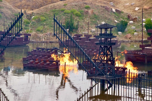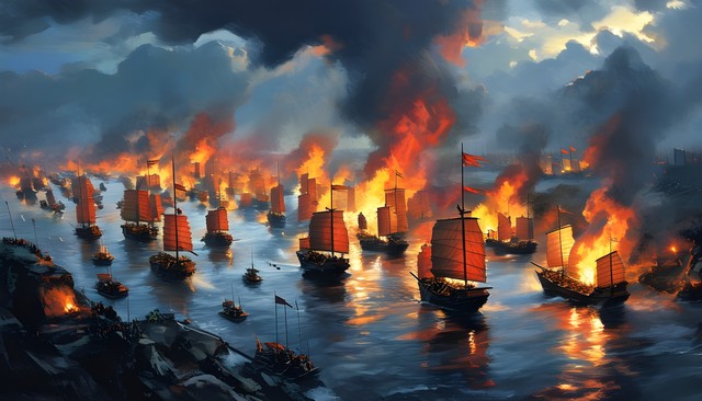 火龙不是普通的火焰,而是一场精心设计的火攻。数百只快舟装满干草、麻绳和易燃物,顺风而行,悄无声息地靠近曹操的船队。一声令下,火光骤然升起,火势如龙腾空,瞬间吞噬了大片船只。