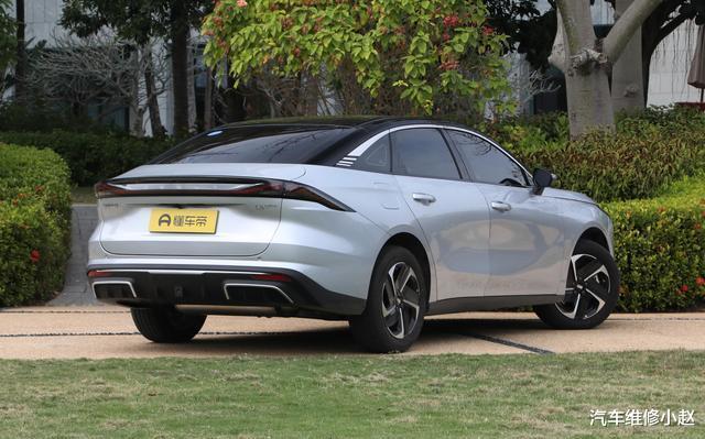 在尾部造型上,后备厢顶端有微微上翘的小鸭尾设计。熏黑的尾灯组运用贯穿式设计,这种设计能够有效地拓宽车尾横向的视觉宽度。牌照框区域为内凹式设计,为车尾的层次感增添了点缀。下包围处配备极具立体感的黑色饰板,并且营造出扩散器的造型,排气管则采用隐藏式布局。