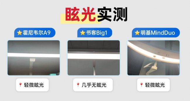 实测方法:在正常坐姿下观察光面书本反射情况,并短时间直视光源,评估刺眼感。