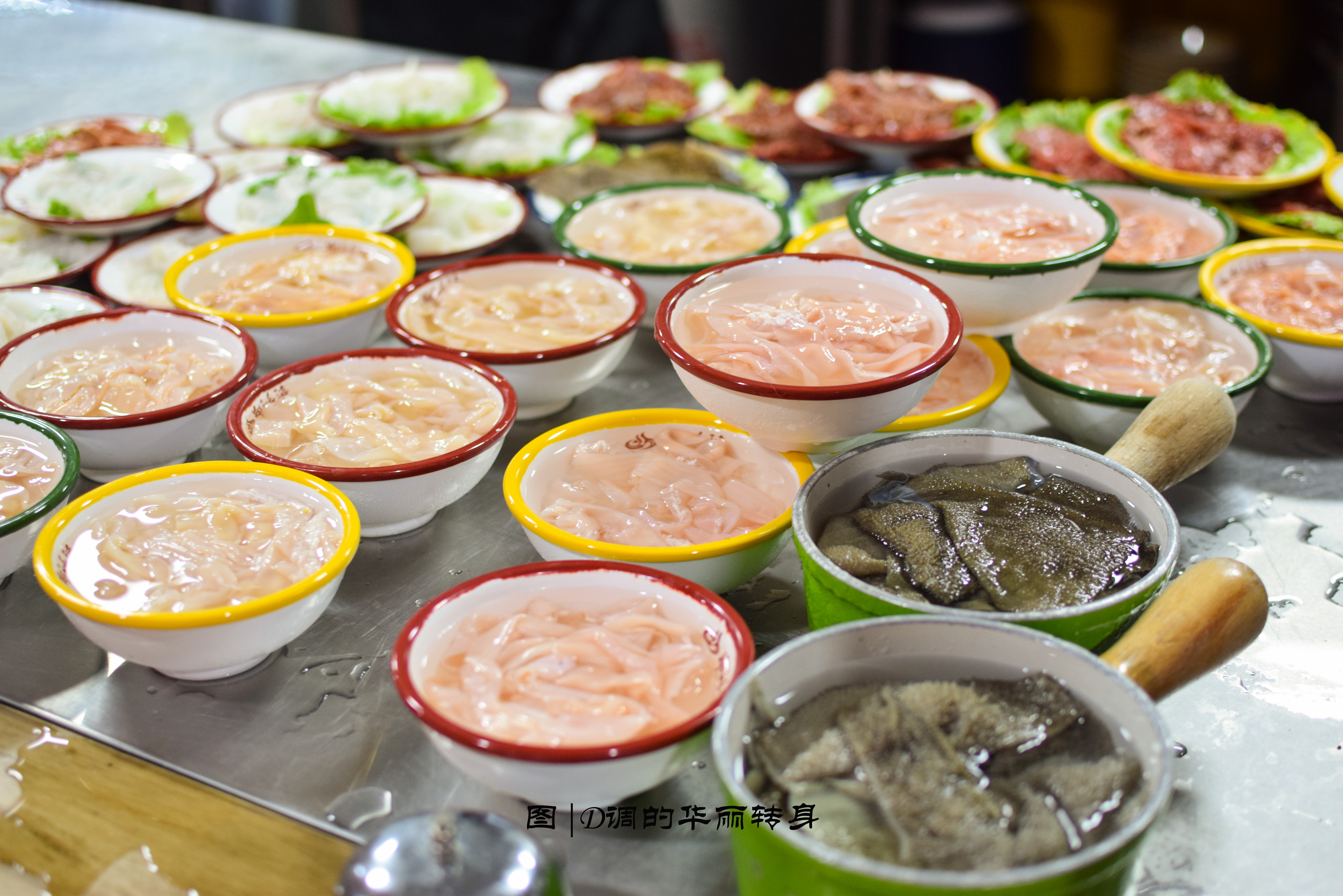 这里也是食肉者的天堂,从现杀田鸡、猪颈肉、雪花牛肉到极品羊肉,让人应接不暇。田鸡肉以腿肉最为肥美,肉质洁白细嫩,“黄金六两”的猪颈肉肉质鲜嫩,入口爽滑,牛羊肉一直是火锅的座上宾,点个三五盘是必须。