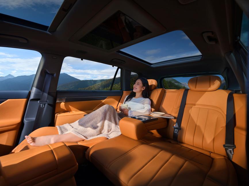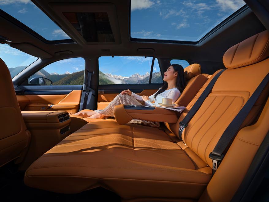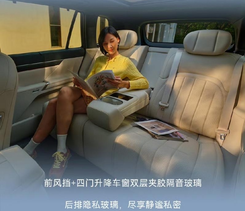 舒适感还体现在温度与触感的双重优化。云感亲肌面料覆盖约15㎡,座椅冬天上车5分钟热透,夏天7分钟通风见效,配合二排双层夹胶隔音隐私玻璃,有效降低风噪与晒感。以往120km/h时孩子难以入睡的场景,如今被21英寸超静音轮胎与出色的隔音表现彻底改写,后排安稳静谧如家。