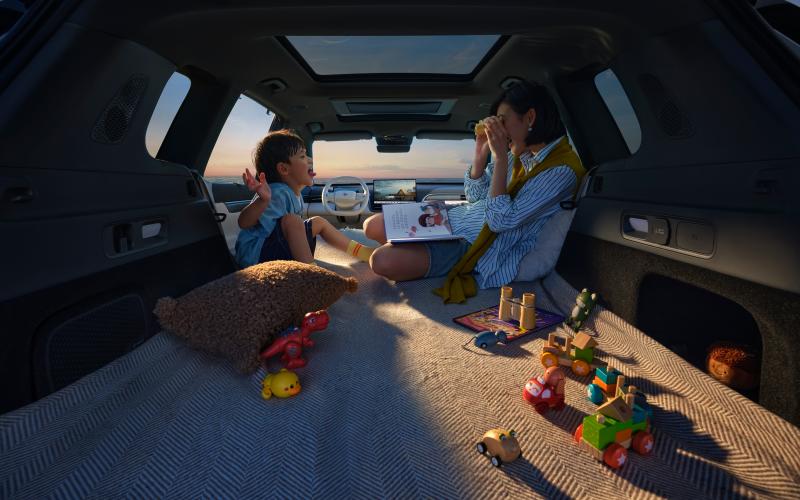 而在家庭使用的细节上,eπ008五座版也考虑得面面俱到。全车22处储物空间,让纸巾、湿巾、玩具、数据线、水杯都有“固定位置”。孩子的零食、画笔触手可及,露营回程的垃圾袋也有独立收纳点,不会让车内越开越乱。