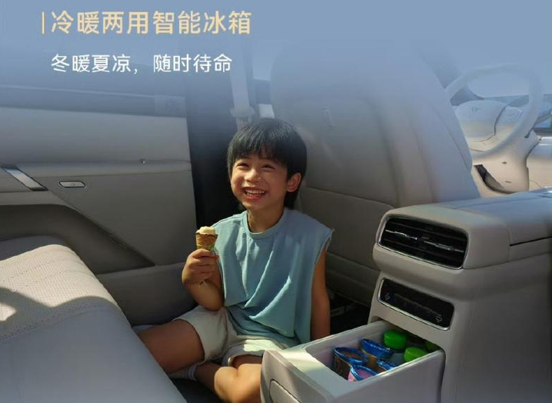 甚至连旅途中的饮食,都能兼顾到位。冷暖两用智能冰箱可实现5℃冷藏与50℃加热,夏天放冰饮一路清凉,冬天则能随时加热孩子的鲜奶与辅食,停车时还能“下电保温”。对于带娃家庭而言,这简直是移动“小厨房”,刚需中的刚需。