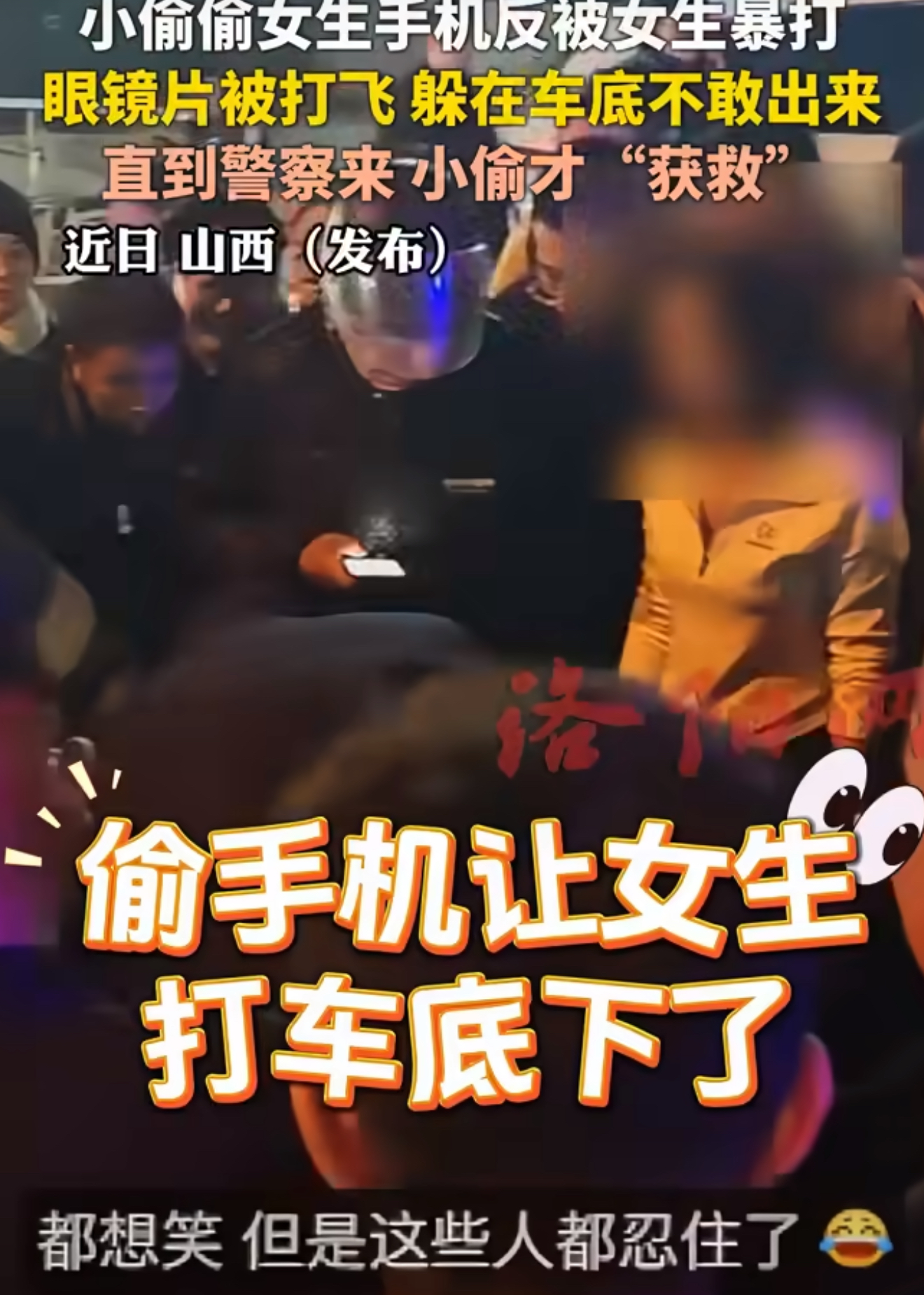 小偷偷手机被女生暴打躲进车底