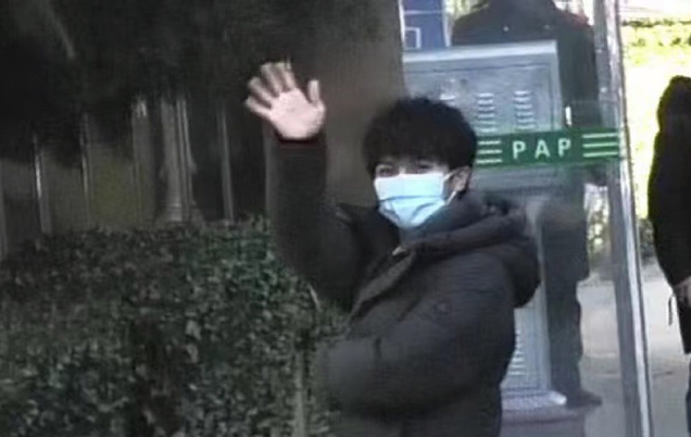 绕过车头接着跟大家挥手,虽然带着口罩,但还是能够感觉到他在笑,挥手完一路小跑就进去了,留给大家一个可爱的背影。