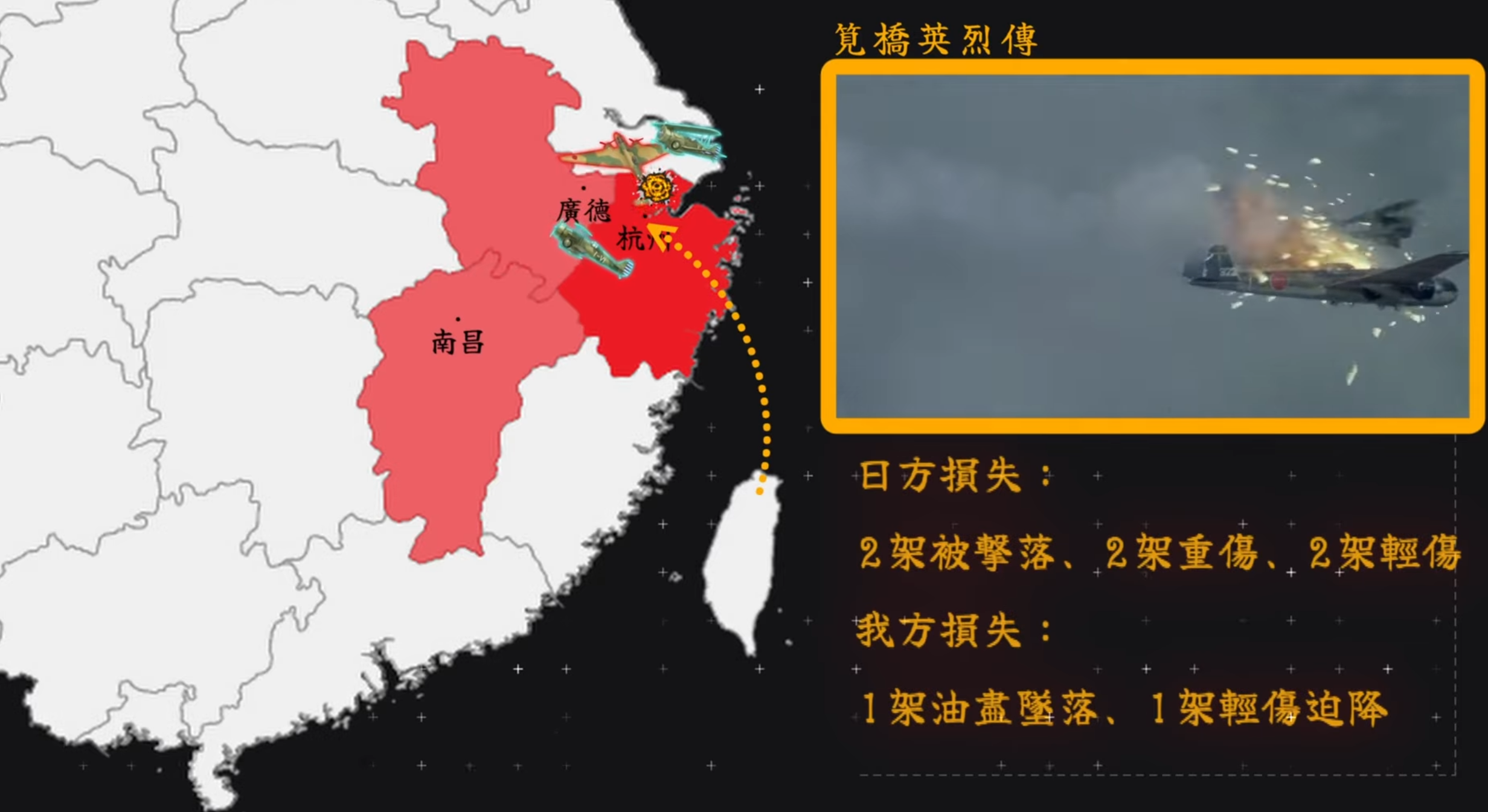民国26年(1937年)8月14日爆发笕桥空战。日方18架九六式陆上攻击机,中方27架霍克III型战斗机。双方在笕桥空中战斗的战果是,日方2架被击落、2架重伤、2架轻伤。我方飞机1架油尽坠落、一架轻伤迫降。为了扬国威表彰空军健儿,国民政府定8月14日为空军节。但日本飞机炸毁了中央航空学校的油库,其他投下的炸弹也波及到了中杭厂。这提醒国民政府的笕桥基地不再安全!
