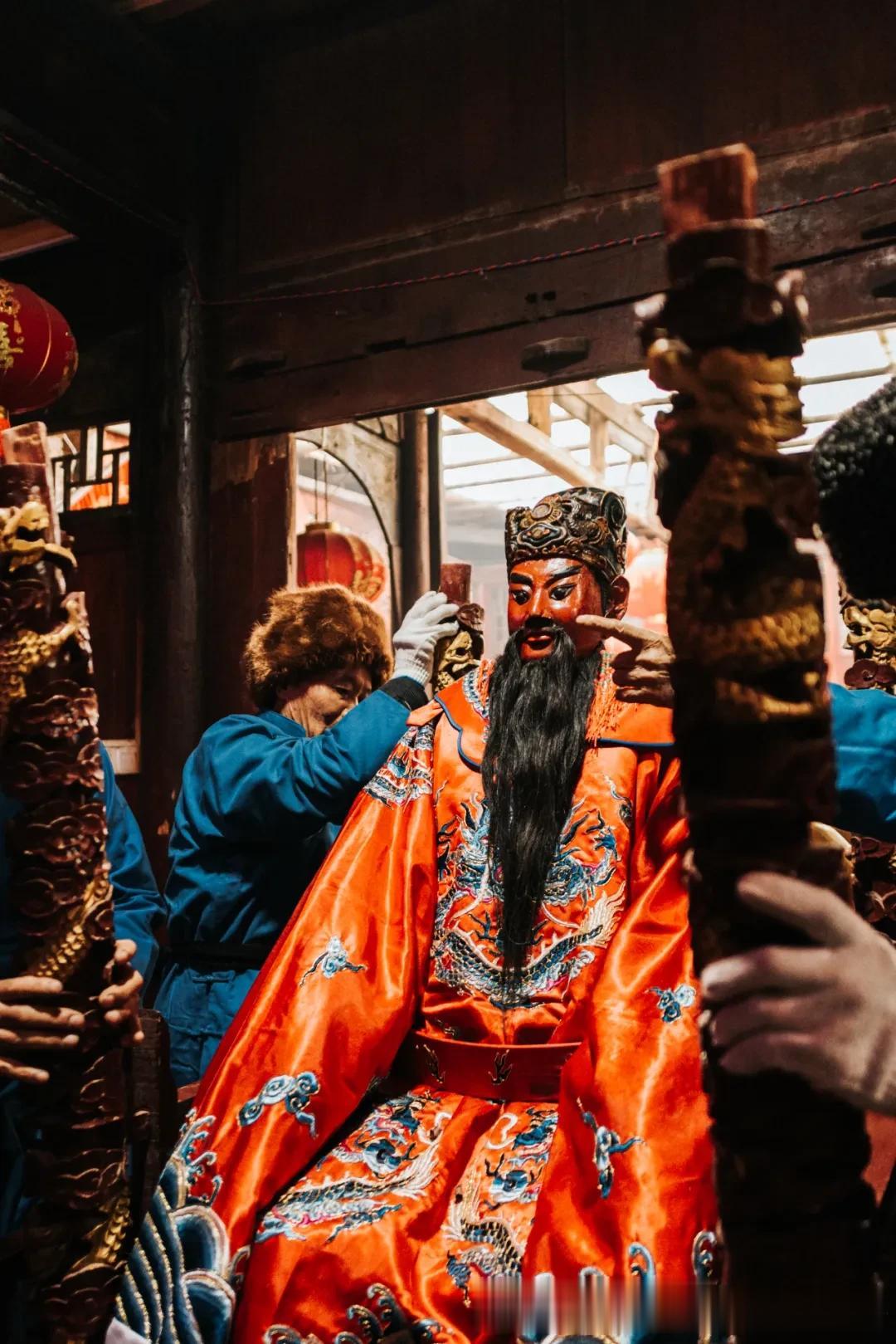 “抬汪公”活动规模极大,必须全村参与。男女老少按长幼尊卑排列,旌旗招展,鼓乐齐鸣,换上新衣的汪公塑像被从庙中请出,一家一家地巡游过去,每到一处,村民都会点起鞭炮迎接,不过几百米的路程,往往要走上三四个小时。这种对仪式感的极致追求,就像是中国文化中“国之大事,在戎在祀”的微缩版本。