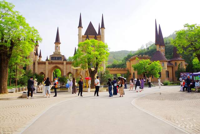 进入海寨沟入口城堡的瞬间,仿若穿越时空结界,陶渊明笔下“芳草鲜美,落英缤纷”的世外桃源跃然眼前。远离城市喧嚣,这里的空气都透着清甜,四周群山环抱,绿意如浪翻涌,耳畔唯有潺潺溪流声与清脆鸟鸣,令人身心瞬间松弛下来。