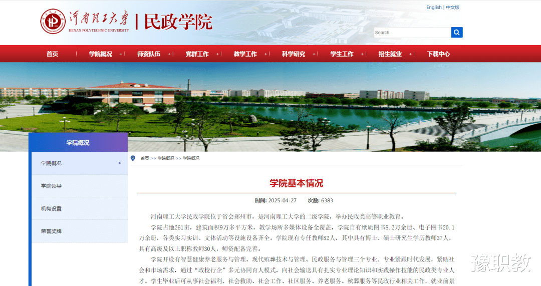河南省民政学校已于2024年8月并入河南理工大学,并成立河南理工大学民政学院。 从中专升格为高等职业教育机构,进行高职层次的招生教学。开设智慧健康养老服务与管理、现代殡葬技术与管理等专业。