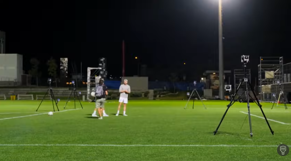 为了跟踪80英里/小时(120公里/小时)的足球,Rober部署了20个OptiTrack PrimeX 120摄像头,以500帧/秒的速度运行,并结合放置在球上的被动反射标记,以跟踪足球运动轨迹。
