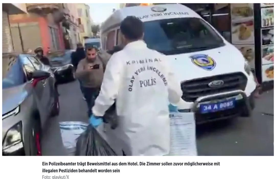 土耳其国家媒体 TRT 援引法医机构的初步毒理报告称,四人的死亡“主要由酒店内的化学性中毒引起”。报告认为,食品中毒的可能性较低,但最终结果仍需等待全部实验完成。调查人员正在检测酒店中用于消灭臭虫的化学品样本。