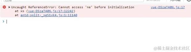 在初始化某个变量前使用它导致报错初步分析是因为ant-design-vue的组件中引用了一些vue相关的特性,这些特性本来打包在ant-design-vue中的,但是经过id(也就是路径)分包后,检测到id.includes('node_modules/vue')时,自动拆离到了vue全家桶的包,导致了引用异常,可见这种方式的分包还是可能会有问题,而vite的开发时使用的esbuild,打包使用的rollup,我们配置的rollupOptions只在打包时生效。所以在开发环境不会报错。这个问题我已经关注到,希望读者在使用id分包的时候注意,如果有相同的问题,先不要采用id分包方式。建议在vite.config.ts中使用如下方式分包(根据项目的依赖灵活配置):