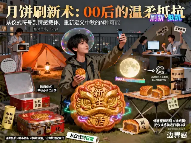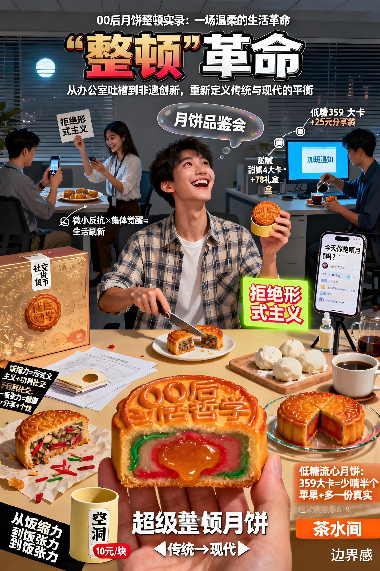 月饼的“整顿”,本质上是一场生活哲学的革新——年轻人不再被动接受传统,而是主动参与传统的创新与传承。这种态度,与他们对职场文化、消费观念的重新定义一脉相承,共同构成了00后一代”刷新”智慧的完整图景。