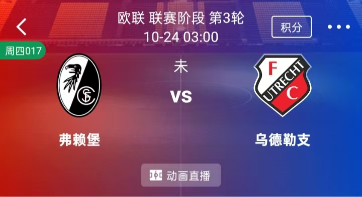 周四 017 欧罗巴:弗赖堡VS乌德勒支