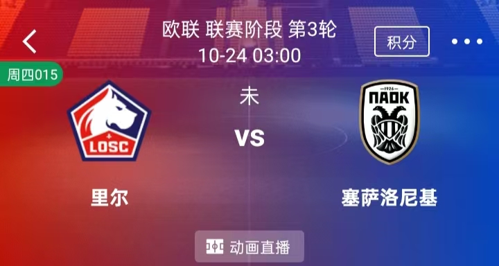 周四 015 欧罗巴:里尔VS塞萨洛尼基