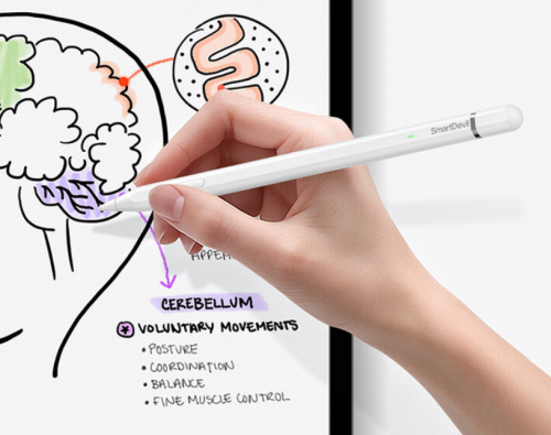 这款电容笔采用了光滑的铝合金材质,既具金属质感,又能有效提高抗摔性,坚固耐用。不过,它的重量接近16克,长时间使用时可能会感觉稍有些沉重。而且,它的开关键位于握笔区域,如果习惯低位握笔,可能会不小心触发,导致误操作。书写方面,它配备了POM笔尖,并支持倾斜压感功能,能够根据不同角度自动调整笔触粗细,让书写更加自然流畅。同时,防误触设计也避免了手腕悬空的困扰,双手可以轻松放松。另外它的续航表现也不错,充满电后可连续使用14小时,紧急时还可以通过iPad进行应急充电,使用起来非常便捷。