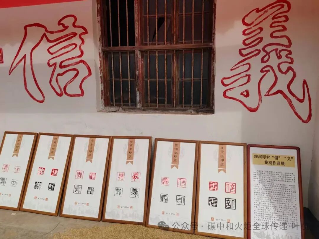 据悉,“淮河印村”位于潢川县踅孜镇,是全国首个农民篆刻群体,首期成员二十多人。2021年10月26日,在潢川县委组织部、宣传部、文广旅局、文联、光州印社、潢川县环保志愿者协会(绿色光州)的大力支持下,当地的篆刻爱好者们聚集起来,举行了“淮河印村”揭牌仪式。2022年5月17日,在“春申君杯”全国书画名家邀请展上,印村有八位成员的篆刻作品入选并收录在邀请展作品集中。印村十多位成员的篆刻作品相继在潢川县首届、二届篆刻艺术展览中展出。这些成绩的取得,使得印村的声誉不径而走,成为远近有名的农民篆刻艺术创作中心。2022年12月9日,踅孜镇因淮河印村篆刻艺术,成功入选2022-2024年度“河南省民间文化艺术之乡”。几年来,当地以印村为载体,以农民篆刻“信、义”为抓手,着力培育“信义文化”,并把“信义文化”融入到农事生产和社会生活全过程,全镇已形成有信仰、讲信誉、守信用、遵道义、尽忠义、重仁义的公序良俗。