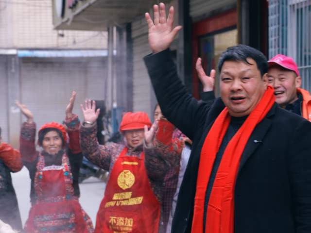 1月22日,餐饮网红店(梁三妹•梁鸡肉)胥总梁总夫妇亲临现场,为二郎神故里刨猪宴助力。
