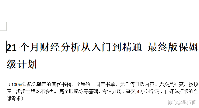 我是这样问的:“我想成为分析行业的财经高手,将来可以在公众号上写深度分析的付费文章。但我是个新手,什么也不会。请给我一份详细的从入门到精通的方法。我个人的认知能力很低,只有初中学历,如今40岁,这20多年几乎没接触过什么知识,都是浑浑噩噩度过的,目前失业在家。而且最近被短视频吸引,很难专注读类似于《证券分析》这样的书,每天刷好几个小时的手机短视频。请你给我一份保姆级的攻略,非常详细的教我。我想用1年零9个月的时间达成,每天学习4个小时。请你每一步都特别详细的说,要不然我理解不清楚。请你给我将计划精确到每天做什么,方便我每天学习完在自媒体平台做一个学习笔记。另外不要出现表格。关于学习资料,我想利用比较权威性的书籍,关于数据,想看那些官方的信息。”