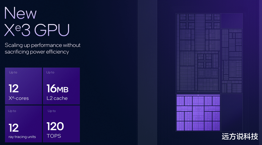 GPU方面,全新的Xe3架构是Panther Lake的一大亮点,Panther Lake最多支持12个Xe3核心,最大16MB的L2缓存,最多12个光追单元以及120TOPS的算力。相比8个Xe核心的Lunar Lake,GPU整体性能提升高达50%,相较于Arrow Lake H的每瓦性能高出40%,“牙膏厂”这样的巨幅提升是极其罕见的,可以预见Panther Lake带给用户的惊喜表现了。