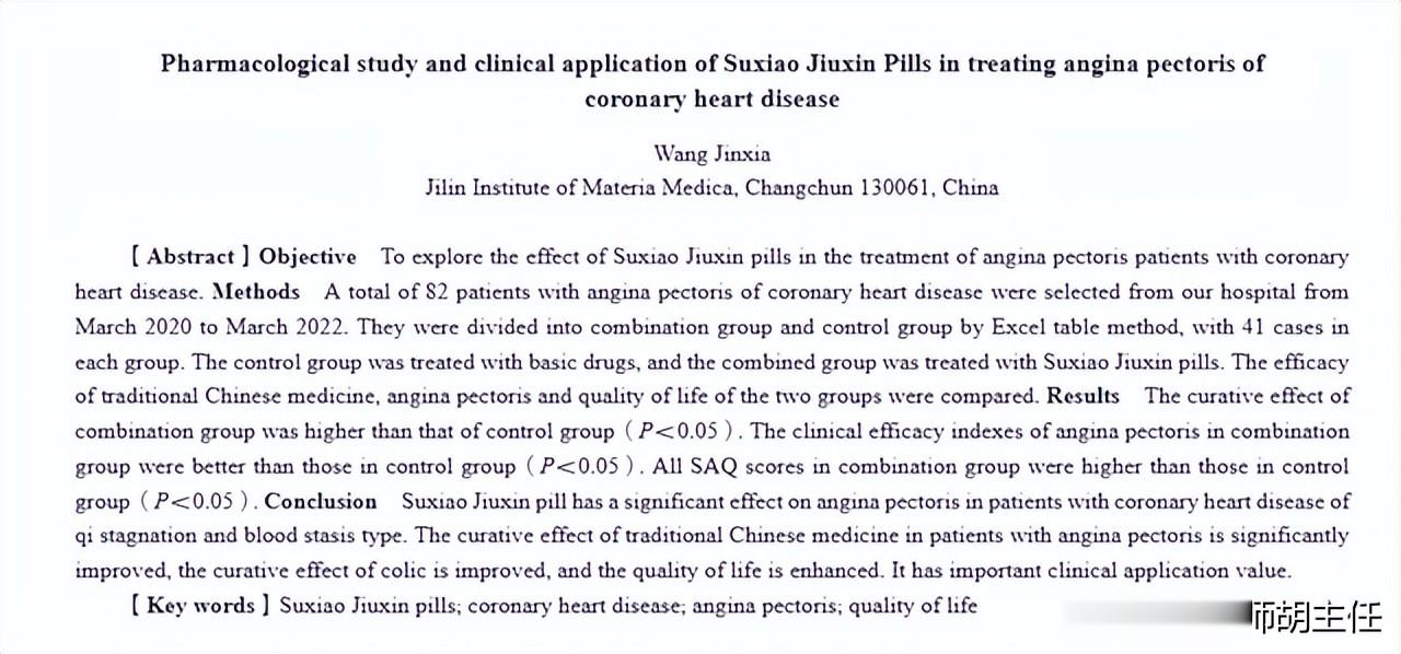 4、吉林省药物研究院.速效救心丸治疗冠心病心绞痛的药理研究及临床运用效果.2022