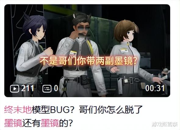 怎么个明显BUG呢?就这个开局来到帝江号的过场剧情中,管理员跟着佩丽卡来巡视,佩丽卡正在跟爷唠嗑呢,旁边的工作人员,对,就这仨美女和靓仔,好奇的看着我们,不是哥们,房间里这么黑戴墨镜看得清吗?确实看不清,所以靓仔摘墨镜下来惊奇的看我们,这下换我们惊奇的看着他了——摘一副墨镜还有一副墨镜,你墨镜长脸上了?