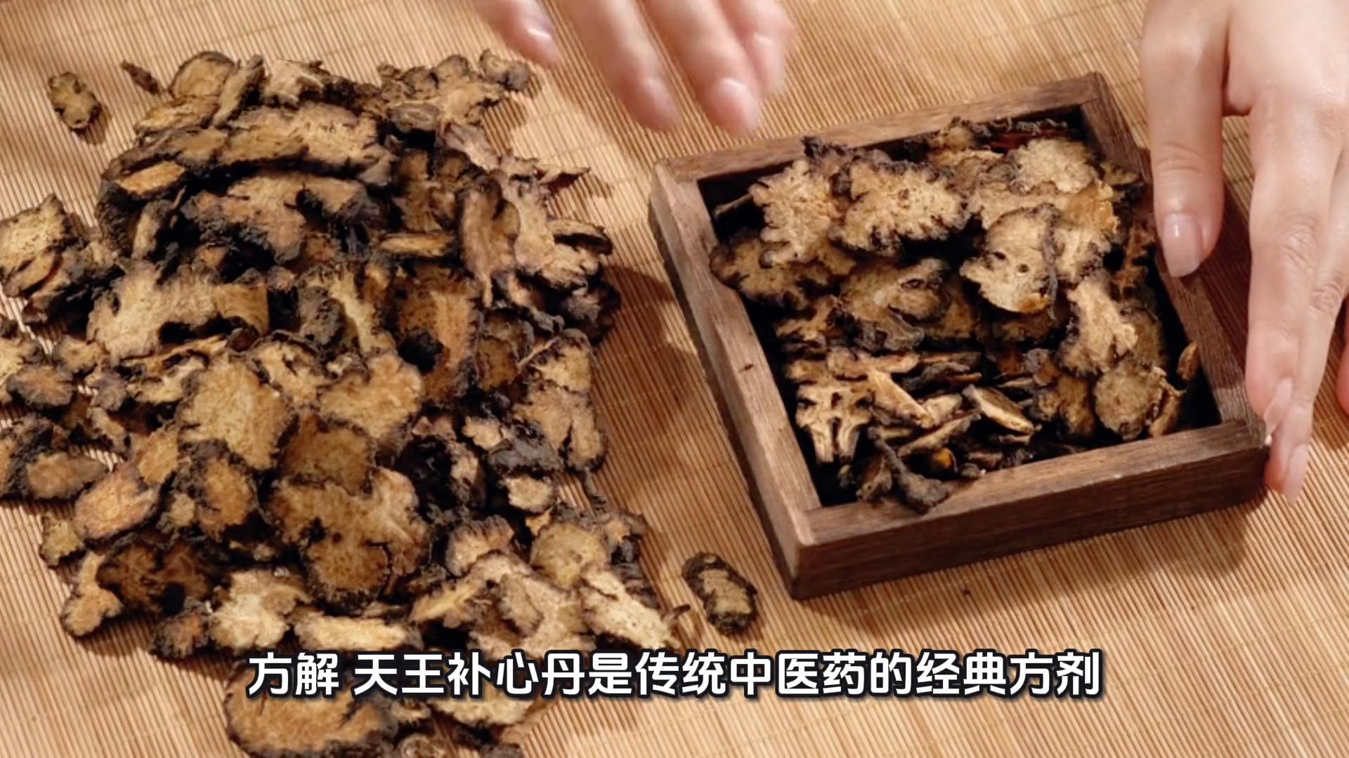 ·4、天王补心丹。方解天王补心丹是传统中医药的经典方剂,来源于明洪九有摄生秘剖,由生地人参元参、天冬麦冬丹参等14味中药配伍组成,具有滋阴养血补心安神之功效,用于心阴不足、心悸健忘失眠多梦、大便干燥等证。