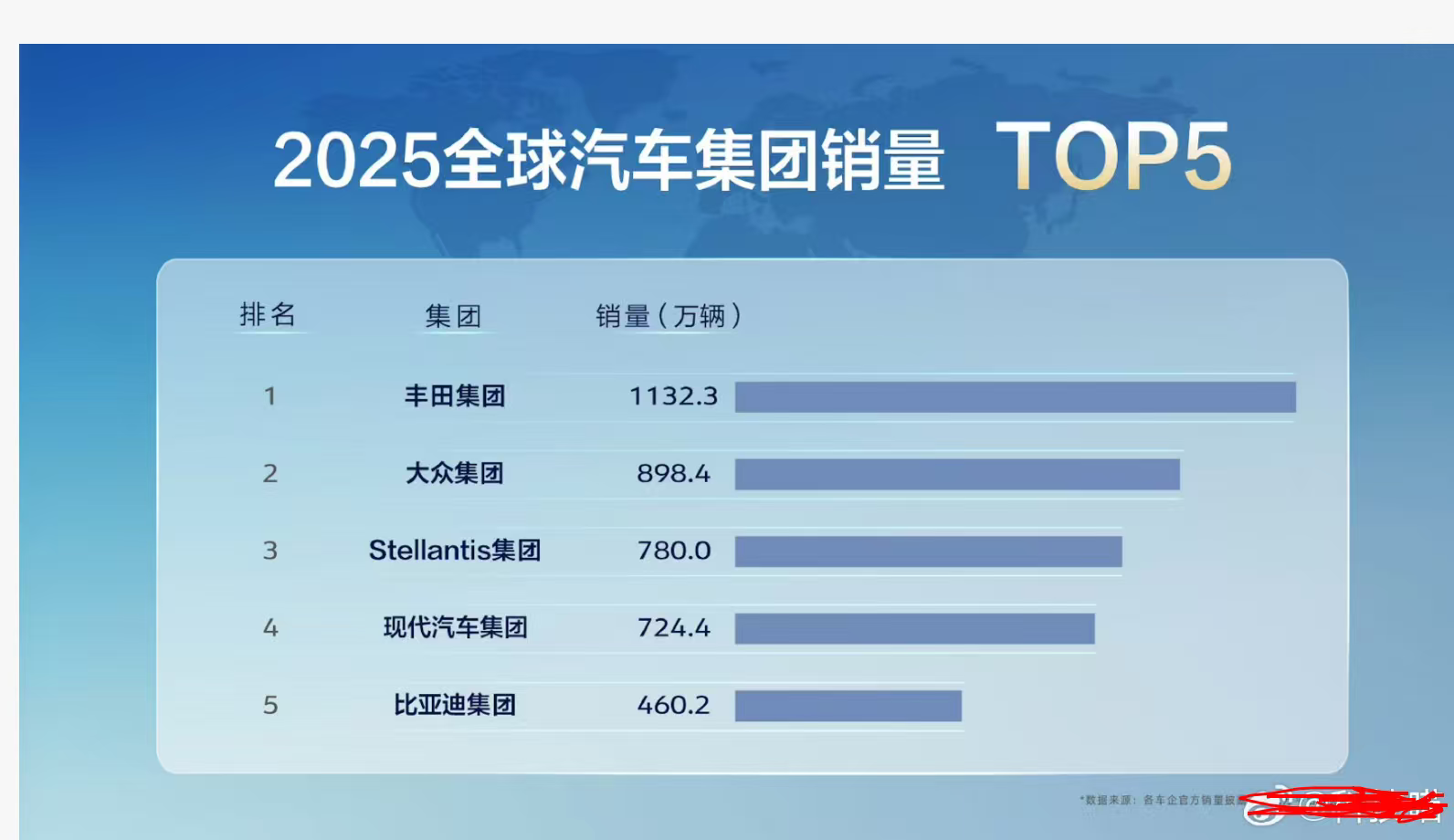 这是一个很了不起的成就,想当初我们国产汽车销量想进入全球前二十都难,现在不仅有比亚迪,还有吉利奇瑞长安长城这些老牌车企,年销量都是一百万以上了;比亚迪的海外市场进展的也非常的顺利,25年卖了100多万台。虽然离丰田,大众,现代汽车这些差距还有点大,但未来追赶上他们是肯定的。