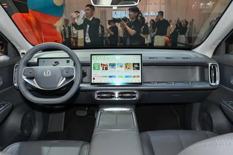 坐进零跑 B10 的车内,第一感觉是空间比想象中宽敞。内饰的 “悦动几何” 风格很年轻化,大量圆角矩形元素让座舱氛围不那么严肃,中控台的开放式悬浮设计没有传统物理按键,操作逻辑和平时用的平板电脑差不多,我这种对科技产品不算敏感的人,几分钟也能上手。