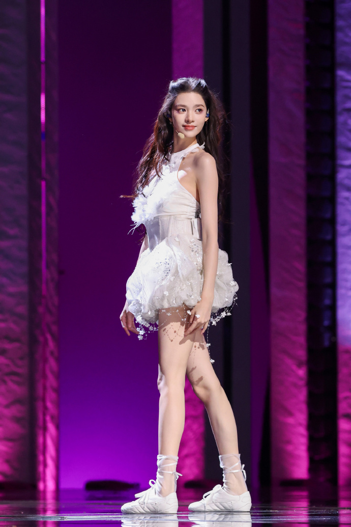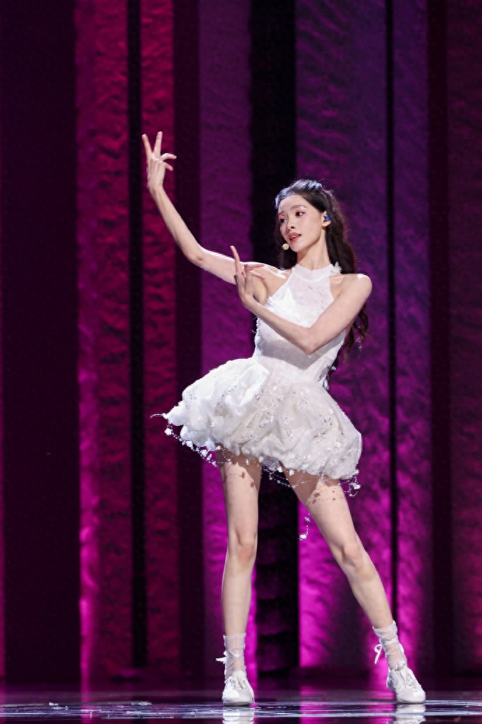 演员张艺上舞台上穿着白色短裙,这美腿很吸引人啊