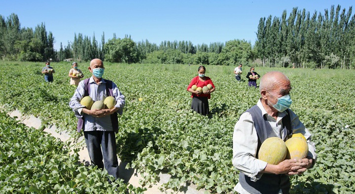 清晨的阳光洒在晶莹的瓜果上,折射出七彩光芒。老张轻轻摘下一颗哈密瓜,切开后汁水四溢,空气中弥漫着清甜的气息。这不僅是自然的馈赠,更是人类智慧的结晶。在这片曾经贫瘠的土地上,农人们用汗水浇灌希望,用科技铸就辉煌,续写着新时代的农业传奇。
