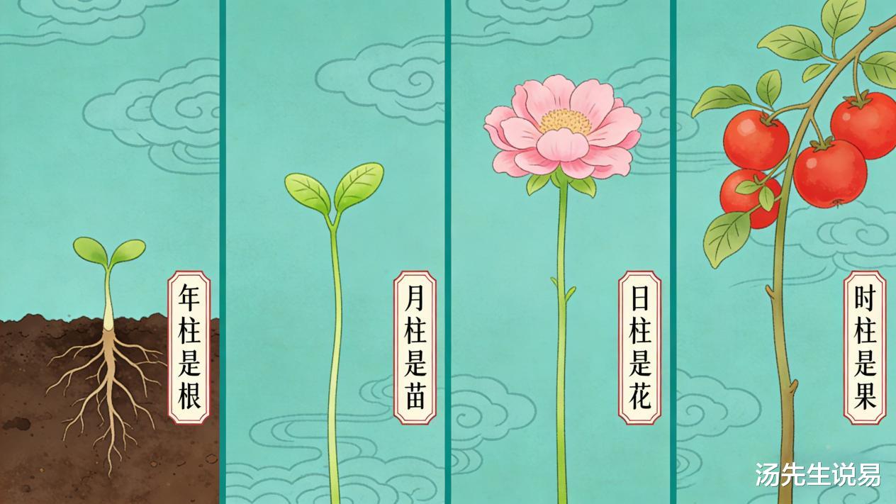 我们知道,年柱是根,月柱是苗,日柱是花,而时柱呢,它是“果”。 简单说,时辰代表的是你命运的“归宿”,你这一辈子折腾半天,最后是开花结果了,还是半途而废了,往往就看这个时辰怎么收尾,它就是你日主最终落脚的地方。