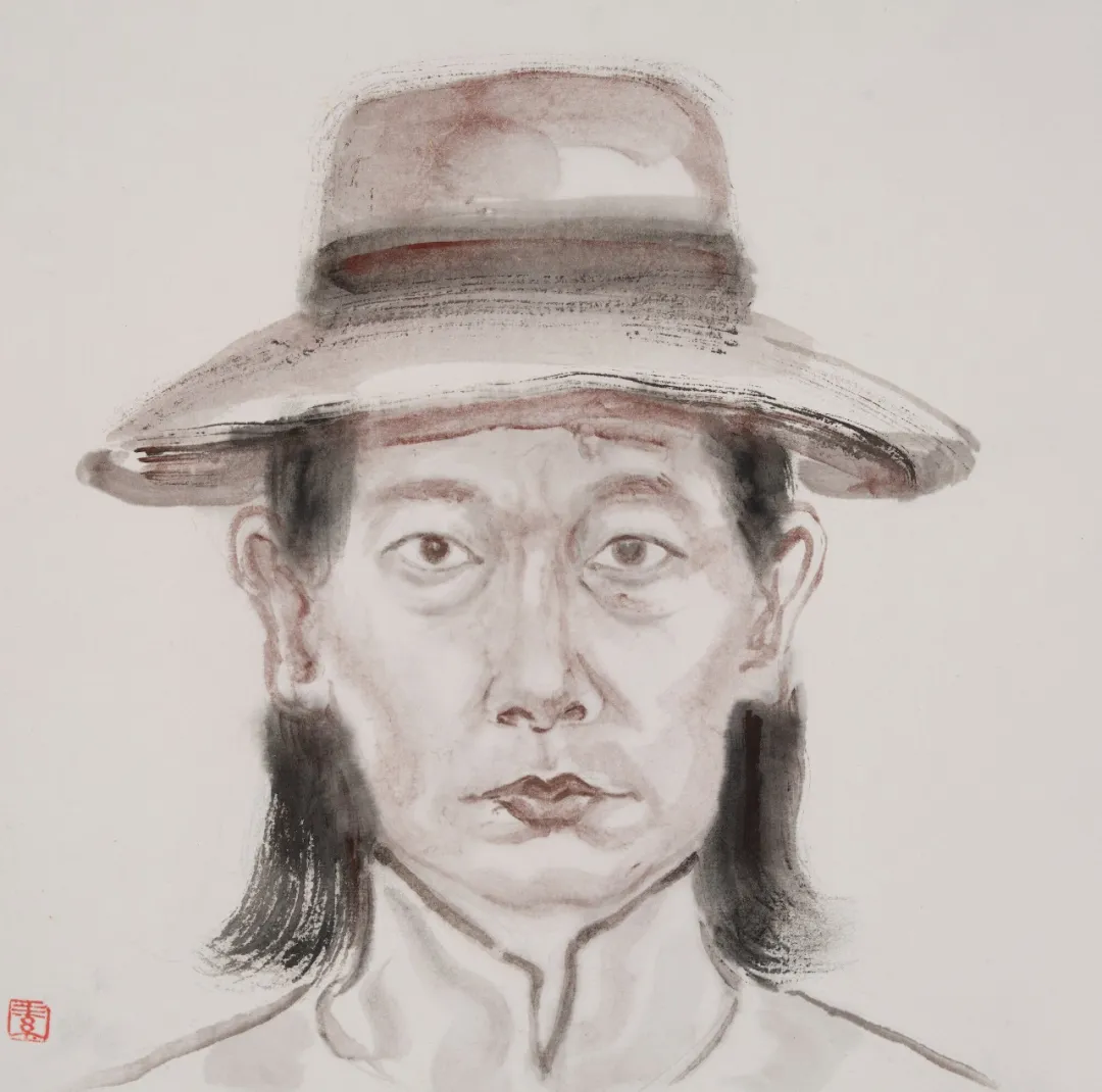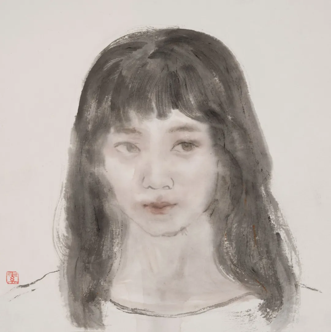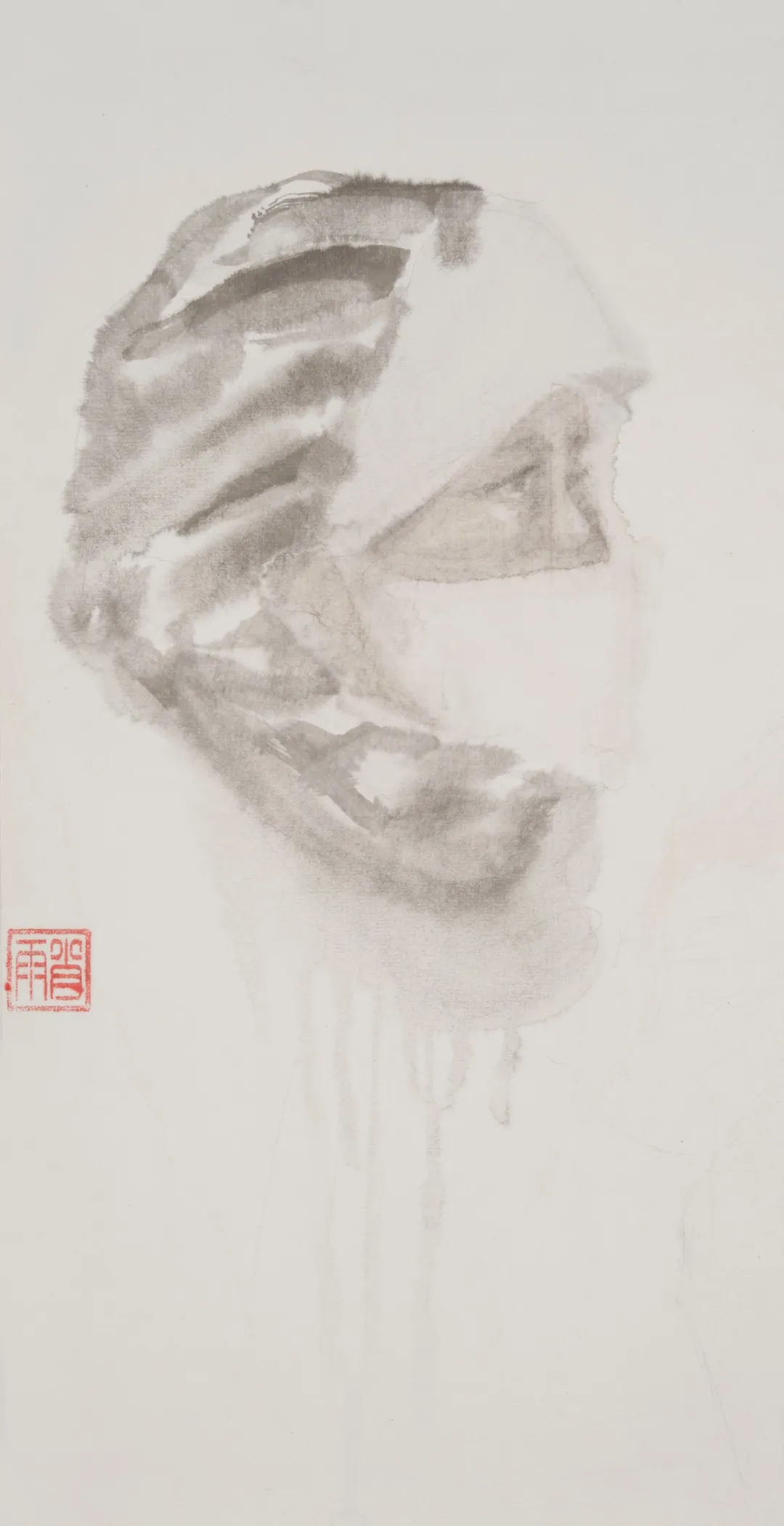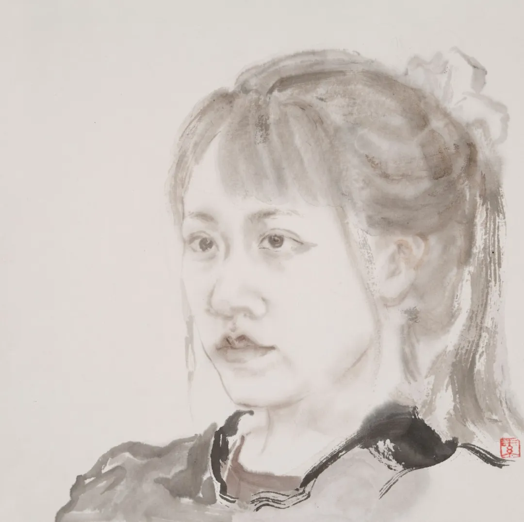 《肖像写生之一》纸本水墨 35cm×40cm 2024年