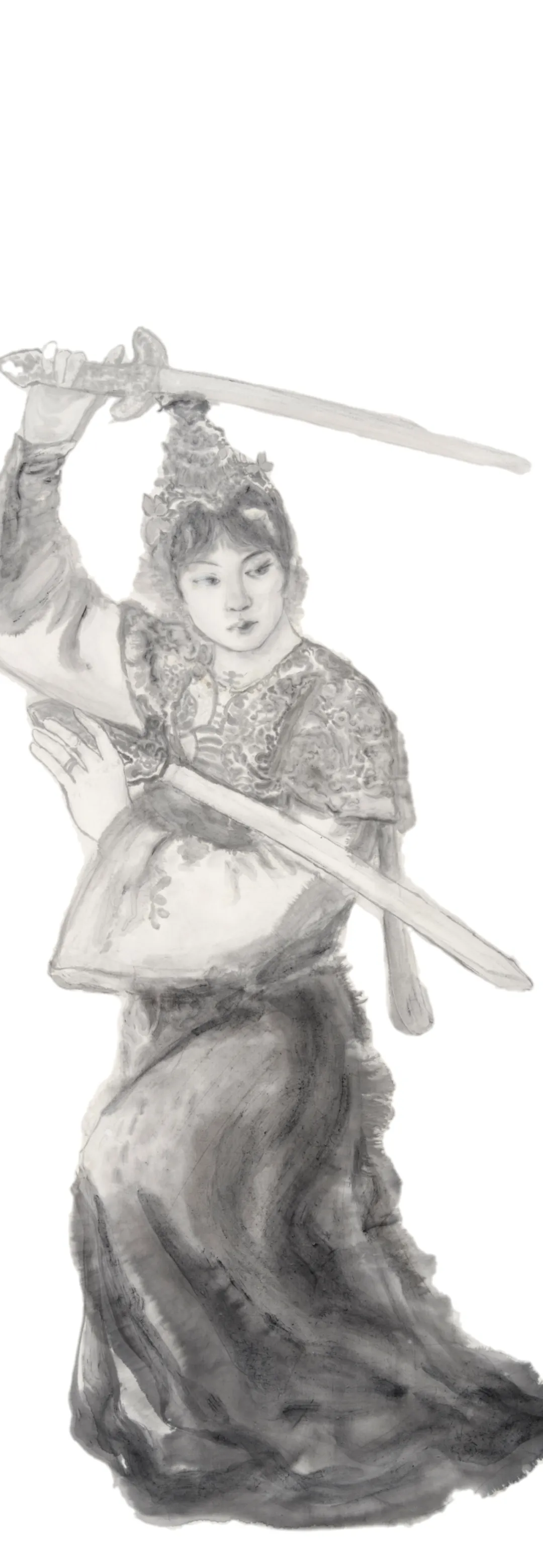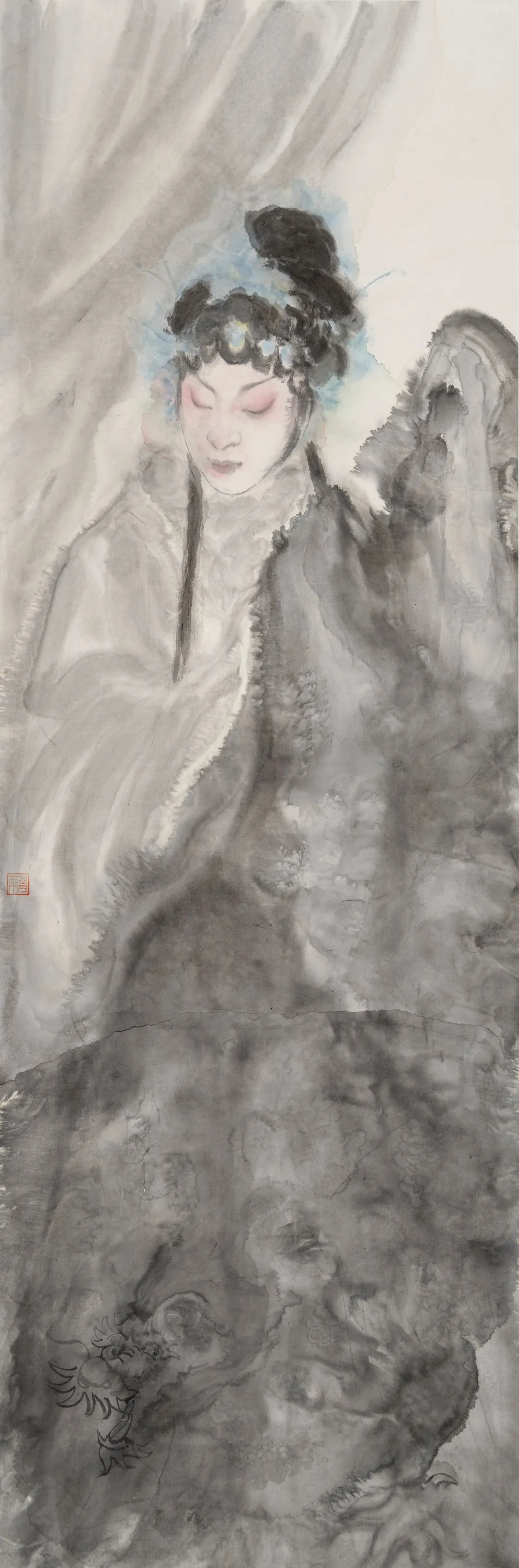 《戏韵人生之一》纸本水墨 180cm×60cm 2025年