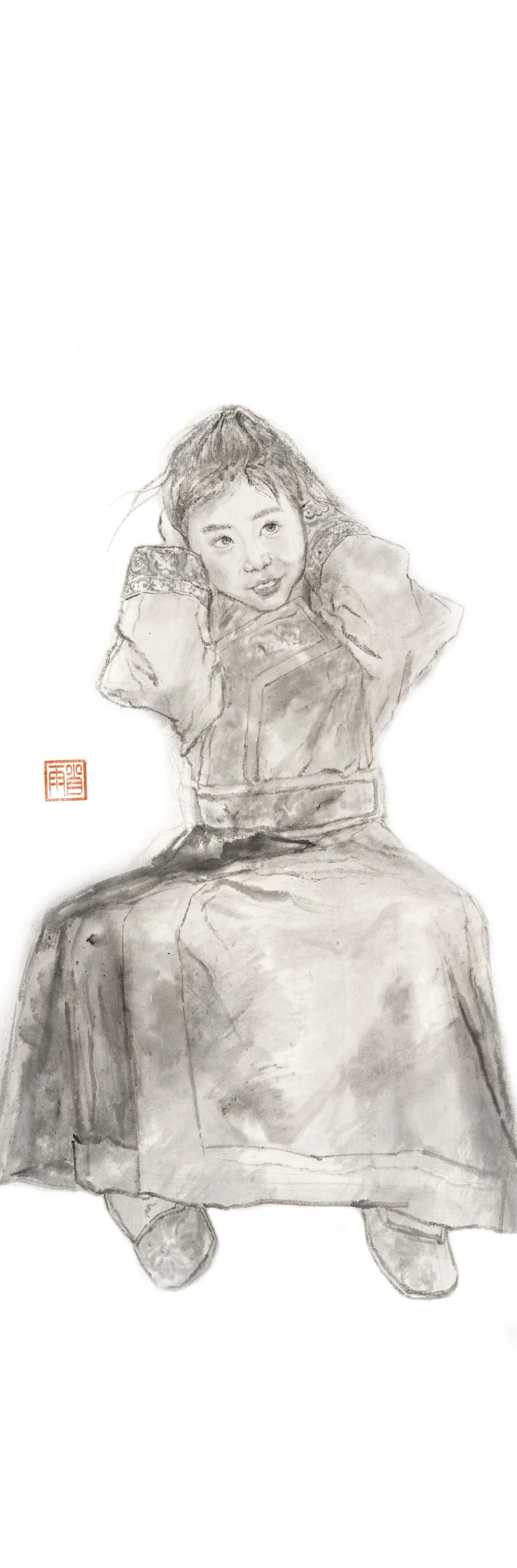 《羌族女孩》纸本水墨 30cm×60cm 2025年