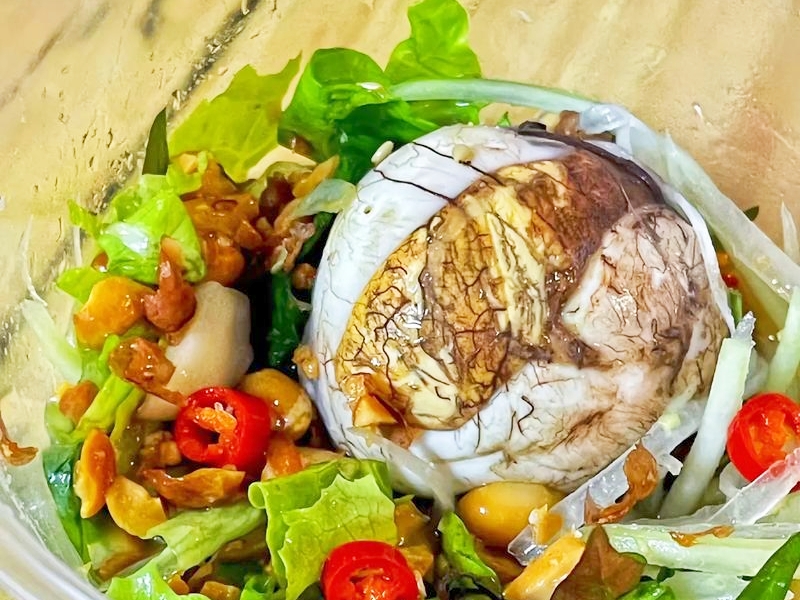 在防城港东兴,这种中越边境的特色小吃,是勇气测试的终极关卡。屈头蛋,指的是即将孵化出壳但尚未破壳的鸭蛋(有的地方也指孵化18天左右的蛋)。吃的时候,你能看到小鸭的雏形,心理冲击力极大。但当地人视其为滋补佳品。配上酸辣佐料后,腥味被巧妙地压住,吃起来口感复杂,既有蛋的醇厚,又有骨的脆感,据说非常美容养颜。