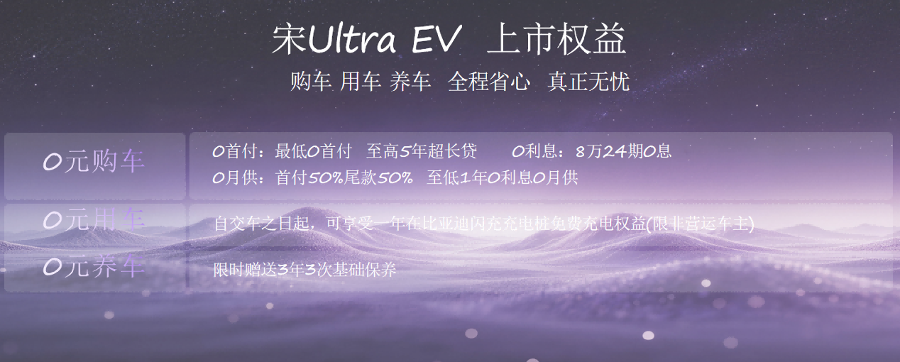 智能化方面,宋Ultra EV可选装天神之眼B-辅助驾驶激光版(DiPilot 300),搭载27个传感器,支持城市领航辅助、高快领航辅助及全场景智能泊车等功能。座舱内标配15.6英寸自适应旋转中控屏、10.25英寸液晶仪表、16扬声器迪声音响系统、50W无线快充等丰富配置。