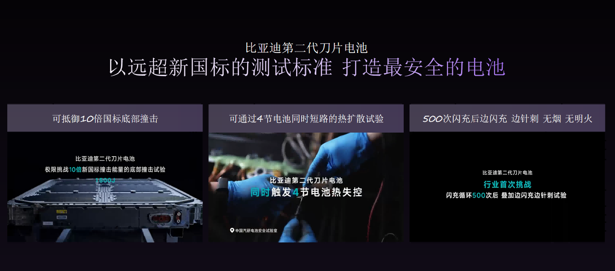 在电池安全与耐久性方面,第二代刀片电池历经“500次闪充循环后,边闪充、边针刺”等严苛实验,安全耐用。电池质保权益也全面升级——容量低于77.5%免费包换,电芯终身保修,让用户彻底消除后顾之忧。