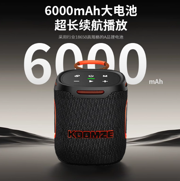核心功能:采用最新的蓝牙5.4技术,连接快且稳。IPX6级防水足以应对户外突降的暴雨。内置6000mAh大电池,实测中等音量连续播放可达18小时,轻松满足两天一夜的露营需求。同时支持TWS互联,两台配对即可组成立体声,非常适合宿舍对播或户外派对。