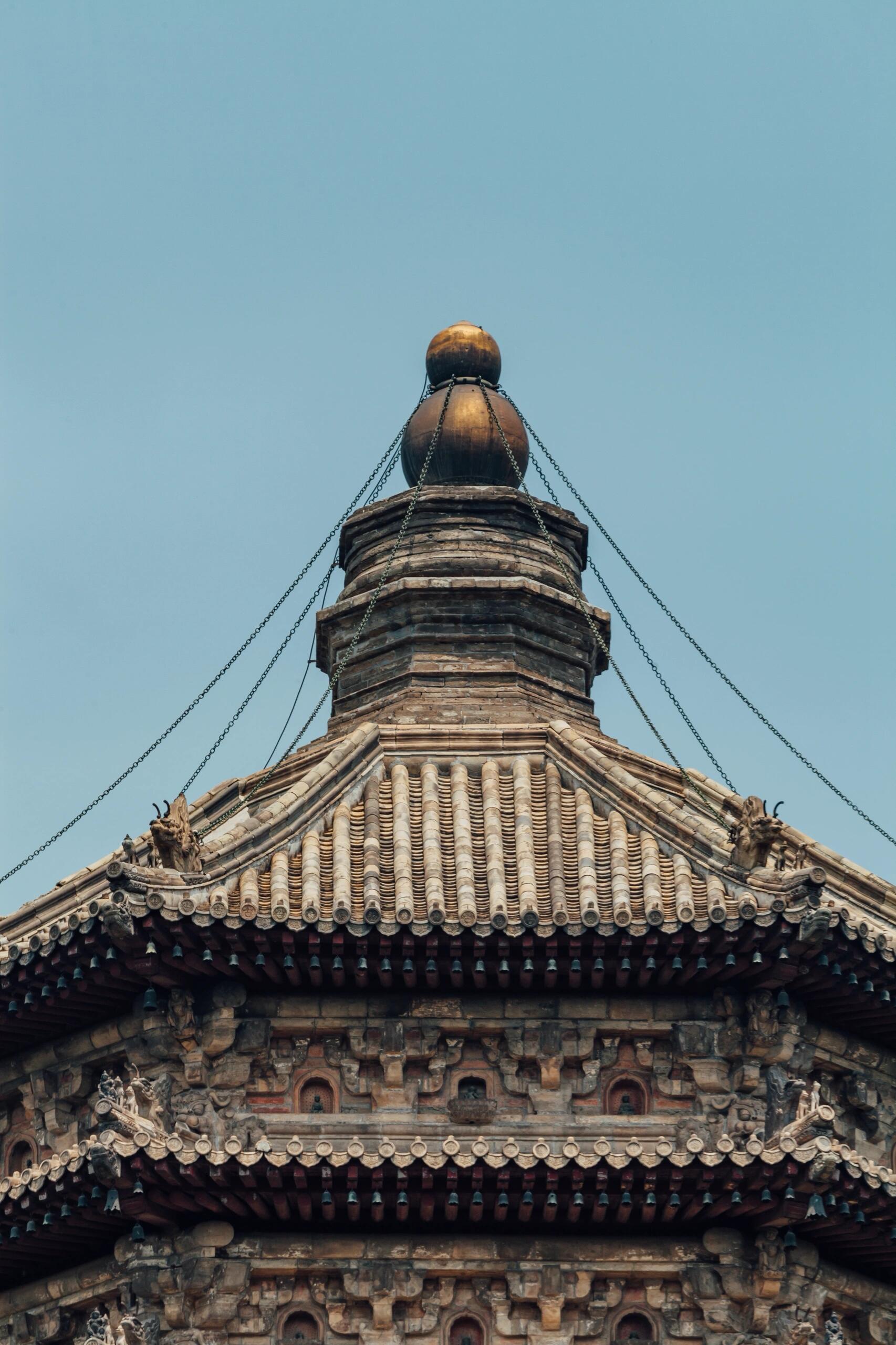 十三层密檐层层内收,形成优美的抛物线形轮廓。每层檐下均施砖雕斗拱,第一层斗拱为五踩重昂,自第二层起递减为三踩单昂,这种做法既符合视觉审美需求,又暗合“层级递减”的礼制秩序。塔檐原挂有3048个铜铃,据《慈寿寺志》记载,“风起时声闻十里”,其声学设计兼具宗教象征与实用功能——铃声不仅用于警世,更可震慑飞鸟,保护塔身不受侵害。