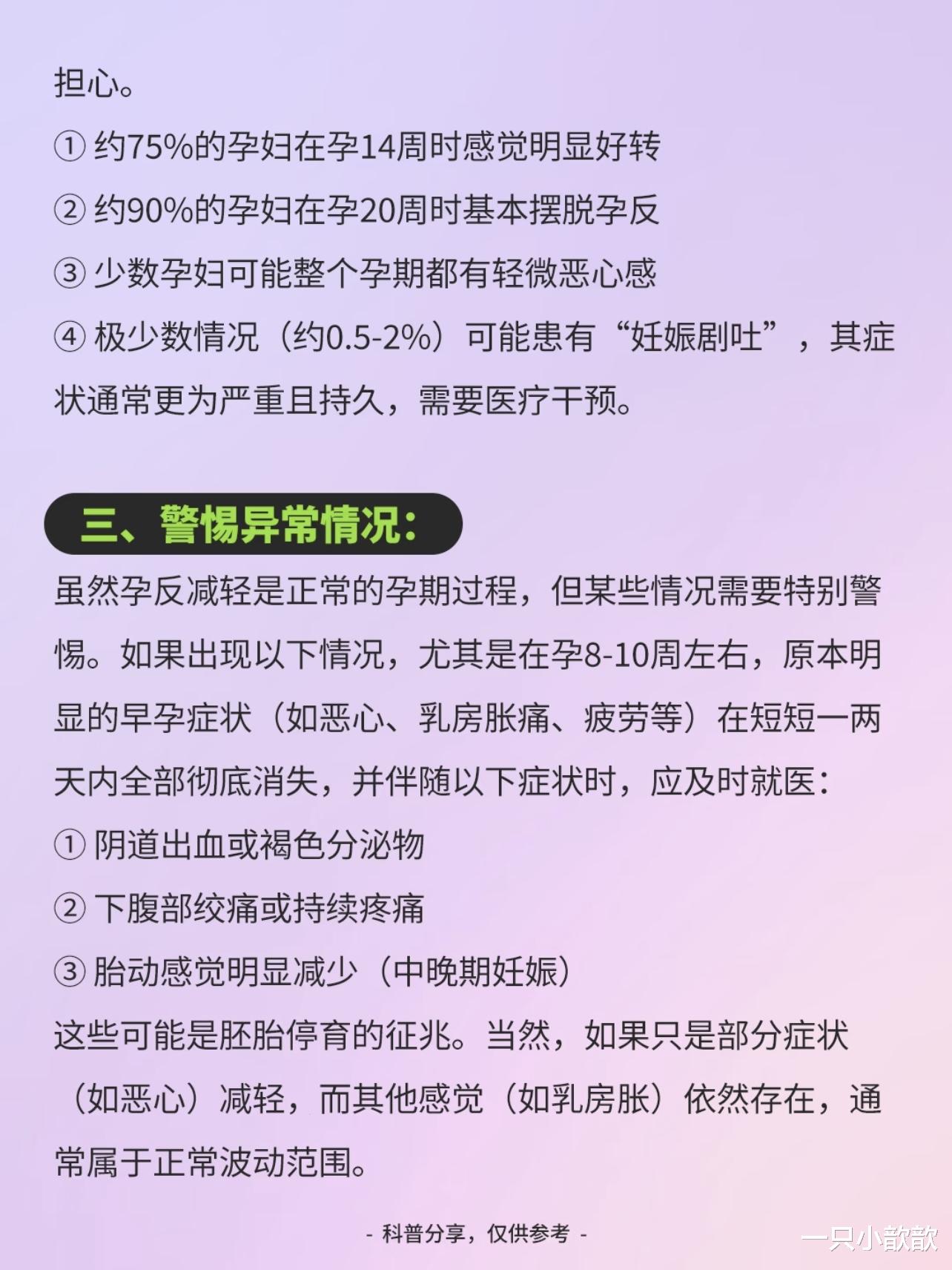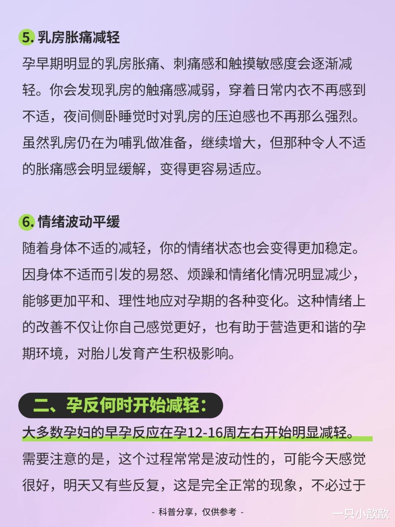怀孕后,孕吐、反酸、乏力像闯关游戏一样接踵而至,让准妈妈们苦不堪言,但别担心,当身体发出这些信号时,说明孕反即将进入尾声,你和宝宝都在为新阶段做好准备!