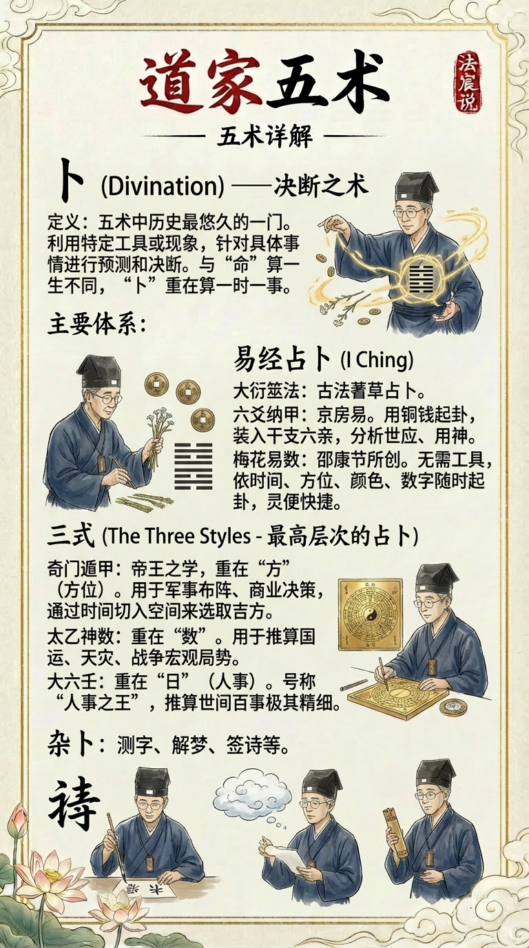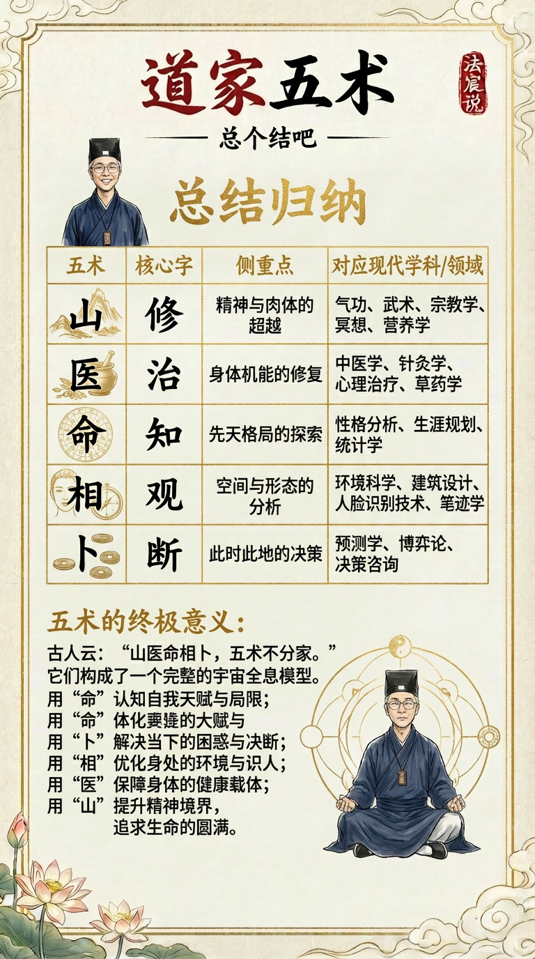 很多小友一听到“道家五术”,脑子里是不是就浮现出各种飞天遁地玄幻名场面、或者是天桥底下“一张桌子一张旗子”吆喝的画面?哎呀,可是误会!误会!咱们这国学里的“山、医、命、相、卜”五门学科,其实是老祖宗留给咱们探索宇宙规律、掌握人运造化的能力。