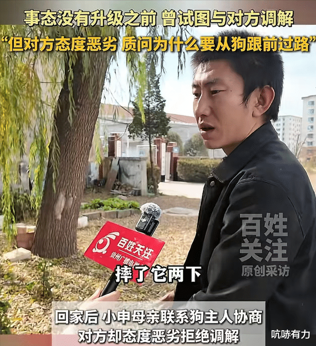 之后试图和郭家调解,但对方态度恶劣,质问:“为什么要从狗跟前过路”、“你的命不如狗的命值钱”等。
