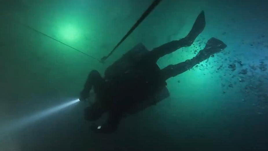 而在此之前,韩颋需要反复下洞做准备工作:他们携带了3台CCR,其中两套自用,另一个作为备用,今天的工作主要是清理洞内杂乱的引导绳和铺设水下通讯光缆,以备不时之需。