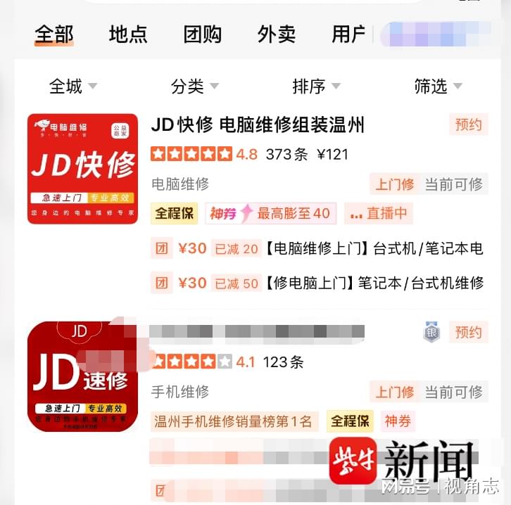 大学生小王不慎把水洒在电脑上,上网搜到一家“JD快修”。